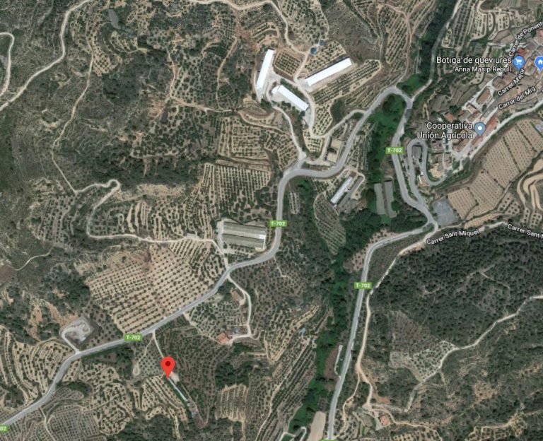 La troballa es va produir casualment mentre es construïa la fonamentació d’una granja de conills a la partida coneguda com Les Tàpies, a poc més d’un quilòmetre de distància de la població, amb les coordenades 41,242260 , 0,725690.