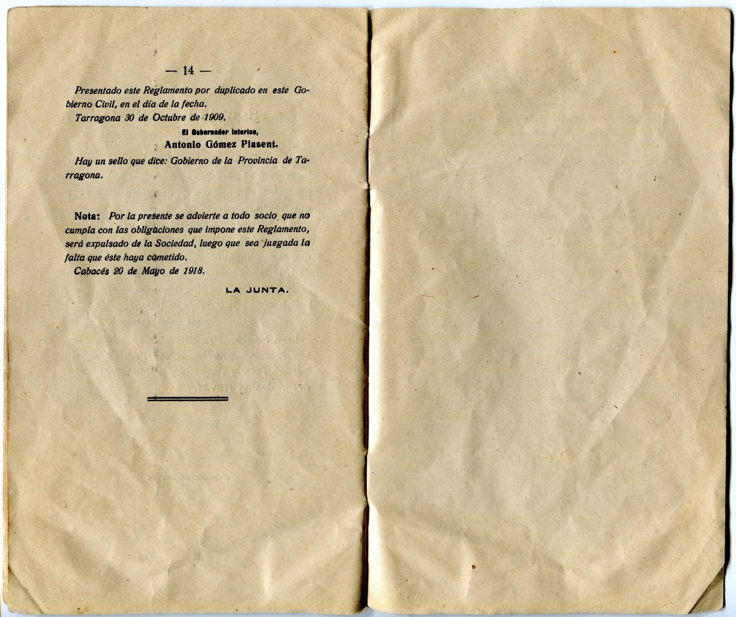 A la llum de les evidències que aporta la fotografia cal revisar la història de la fundació del Sindicat. Aquesta no seria a partir de la Societat Unió Recreativa (per altra banda, entitat documentada només a partir del franquisme, vid. Archivo General de la Administración, Expedientes de Registro de Asociaciones, 52/00223) sínó a partir de Cabacés Agrícol, fundada el 1909 i de la que, sembla, s’escindiren els socis que el 1933 fundaren el Centre d’Esbarjo i Cultura pel desacord amb la nova direcció esquerrana de Cabacés Agrícol.