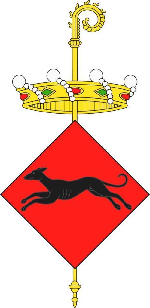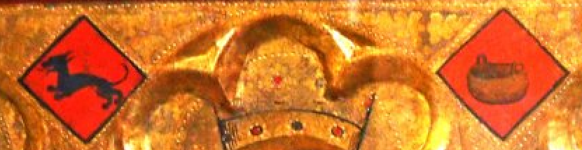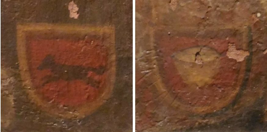 També al retaule gòtic de l’església, datat a principis del segle XV, hi trobem les representacions més antigues de l’heràldica local: dos caironats, un amb un gos negre sobre camp de gules i l’altre representant un cabàs també sobre gules: