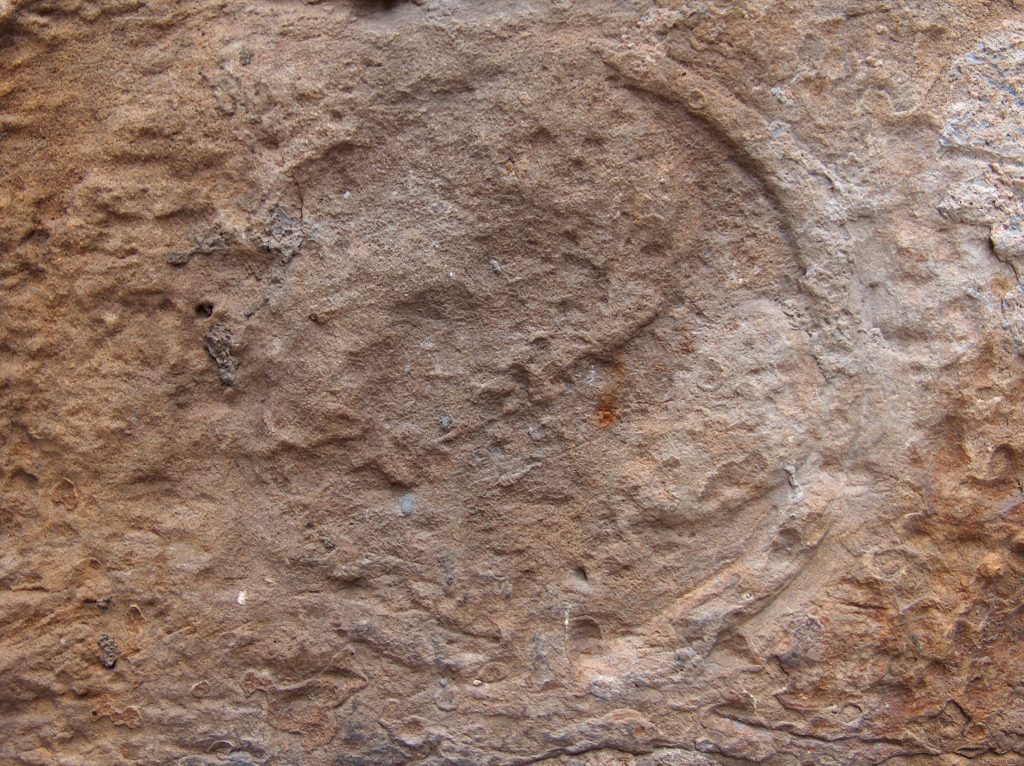 Fig. 2) Molt deteriorat, amb la mateixa representació que al relleu anterior. El relleu té un diàmetre de 16 cm, i el ribet que el voreja té una amplada de 2 cm.